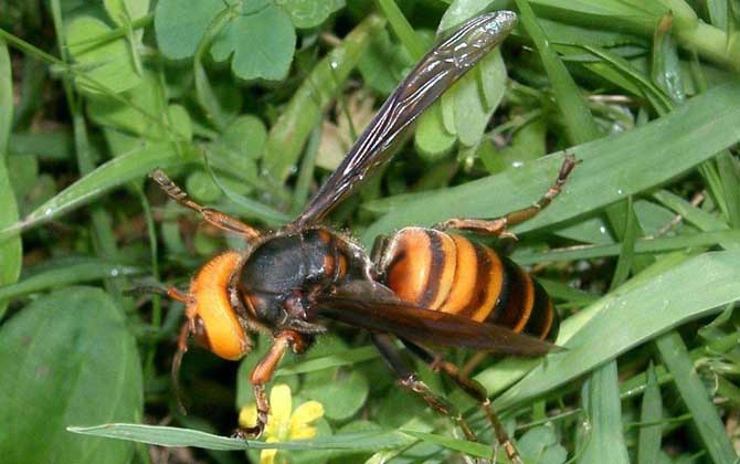 中国大虎头蜂是我国体型最大的虎头蜂(没有之一),别称中华大虎头蜂、台湾大虎头蜂等,事实上中国大虎头蜂还有一个大名鼎鼎的名字即金环胡蜂,下面我们就一起来看一看中国大虎头蜂是不是真的能蜇死人吧!